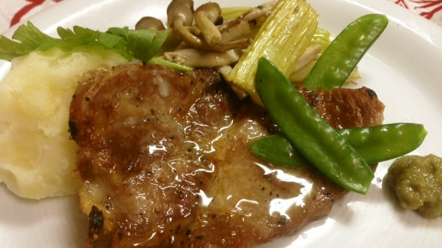 付け合わせの葉っぱは生きたまま食われます ポークチョップへのボケ