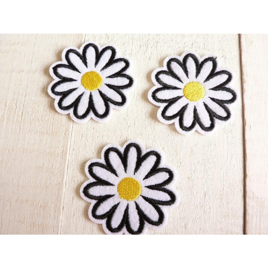 デイジー 3枚セット 白 フラワー ワッペン アイロンパッチ 1 花