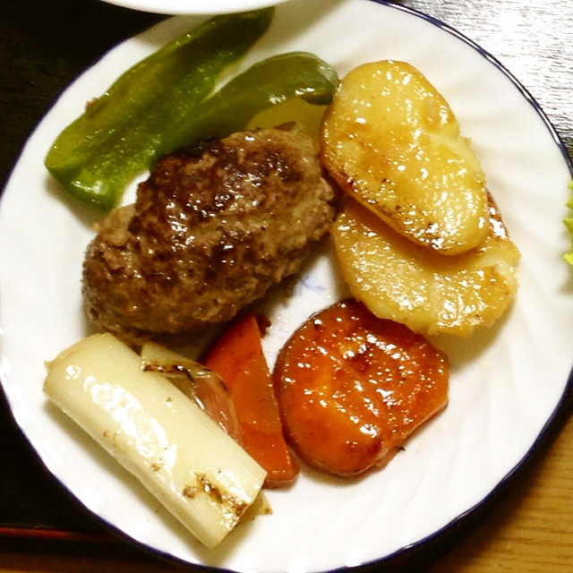 牛蒡入りおろしハンバーグとロースト野菜の付け合わせ アメリカ生活 野菜たっぷりご飯の記録