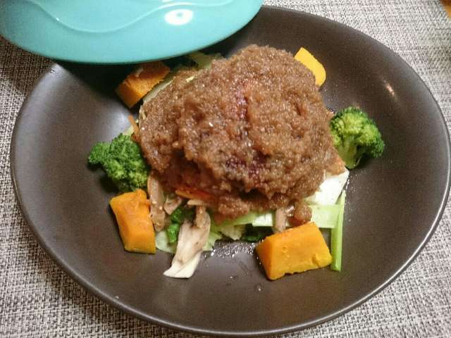 付け合わせ野菜も同時に出来る 蒸しハンバーグ Coucou A Table