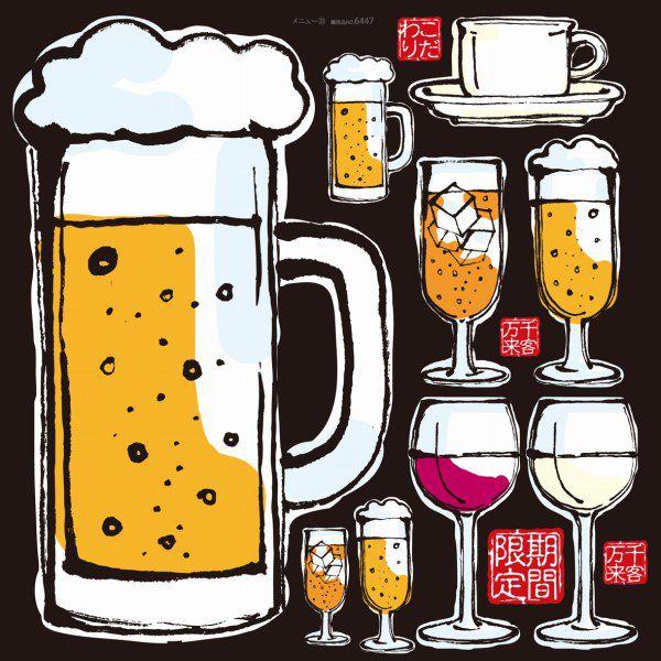 ビール ワイン ドリンク全般 看板 ボード用イラストシール W285