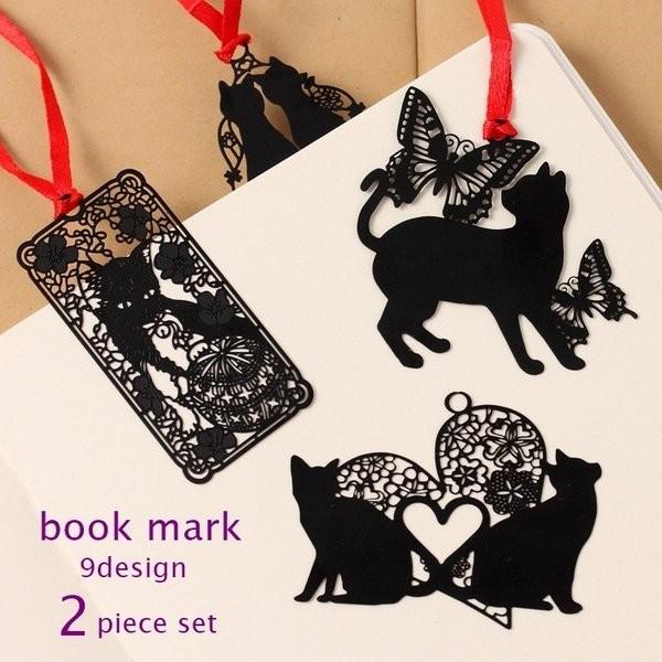 しおり メタルブックマーカー ブックマーク 2個セット 文房具 文具 ステーショナリー 雑貨 金属 ネコ 猫 切り絵 シルエットデザイン コラージュ Cbbo0105 点 点 屋 通販 Yahoo ショッピング