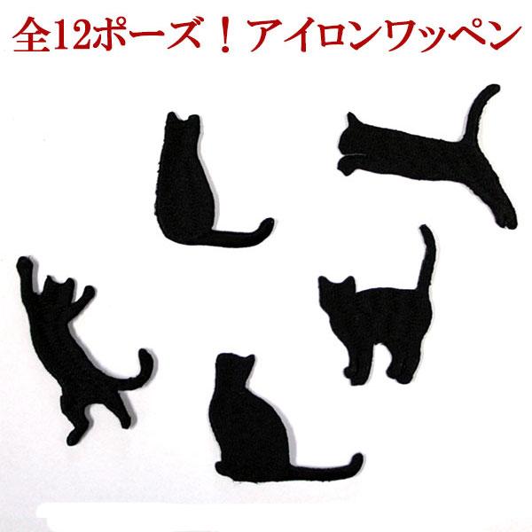 ワッペン アップリケ 猫 ネコ ねこ シルエット 刺繍 アイロンワッペン