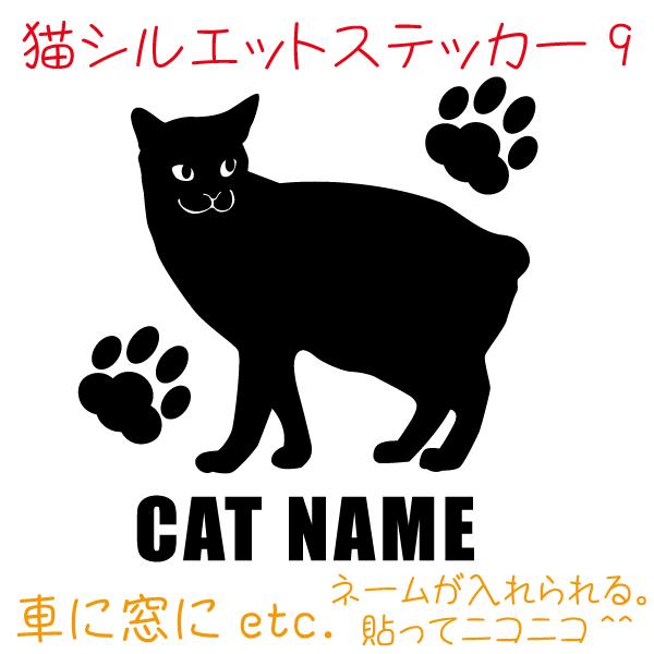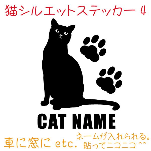 猫 車 ステッカー ネコ ねこ Cat シルエット ペットネームを入れられる
